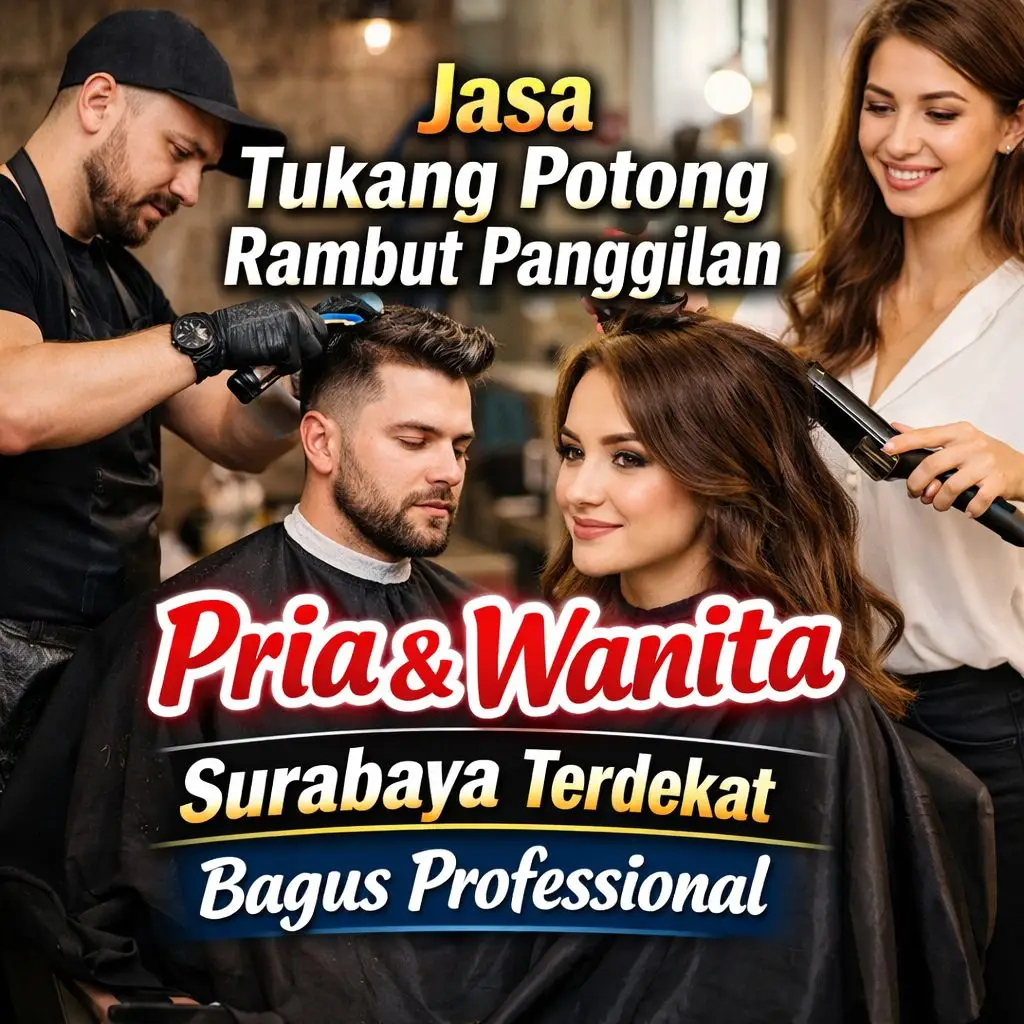 Jasa Tukang Potong Rambut Panggilan Pria Wanita Surabaya Terdekat Bagus Professional siap datang ke rumah, kantor, apartemen, dan hotel. Layanan cepat, higienis, dan hasil potongan rapi seperti barbershop profesional.